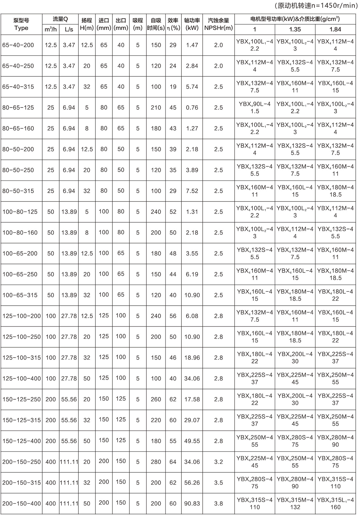 流量:1.25~400m3/h