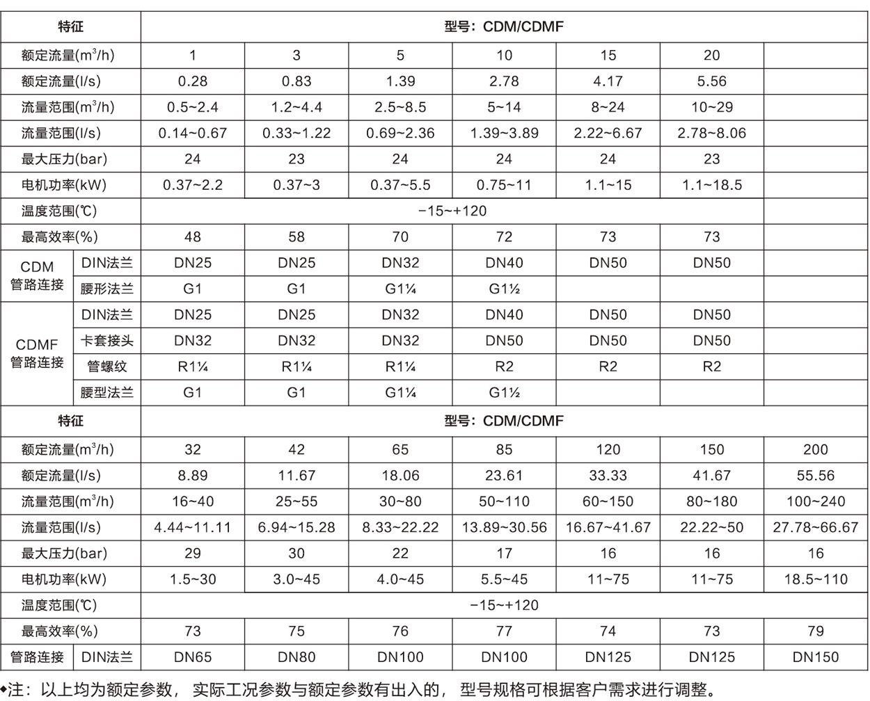 CDM/CDMF系列為參照歐洲標準最新自主研發的新一代、高效率非自吸立式多級離心泵。產品采用全新的工業設計,能效指標達到MEI≥0.7,具有節能、低噪環保及結構緊湊、外形美觀、重量輕、使用維護方便、可靠性高等特點。